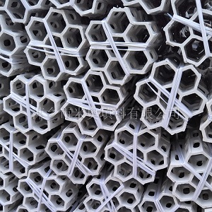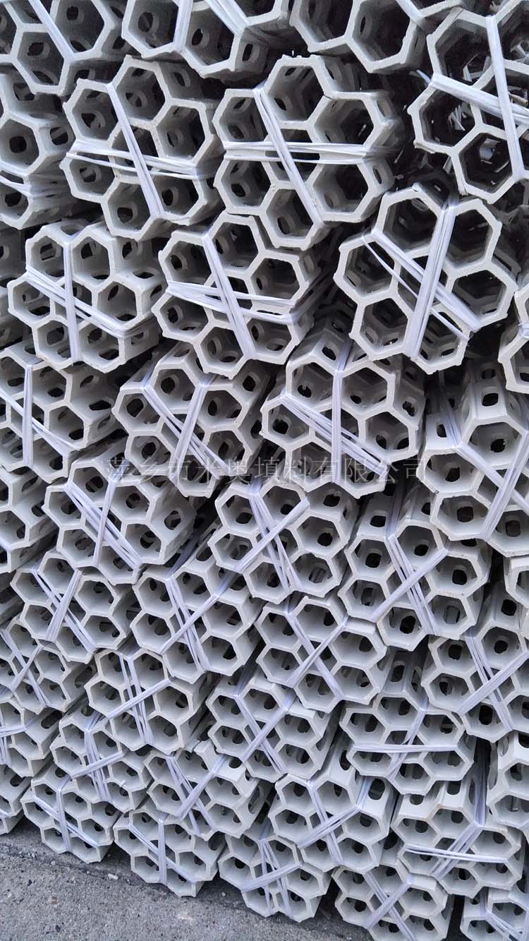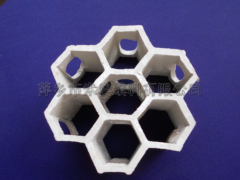 陶瓷組合連環(huán)是一種大塊、多孔、比表面大、比重輕、規(guī)整排列于塔內(nèi)的全輕瓷材料。安裝塔內(nèi)上、下層之間,由其身的支承腳隔開,使氣流均布,克服了亂堆填料所造成的毛病。大大減少了阻力,在傳質(zhì)過(guò)程中,填料表面始終保持一層液膜,形成良好的氣液接觸等特點(diǎn)。全瓷組合填料是以硅質(zhì)粘土加易燃物為主要原料,通過(guò)各種工序精制而成,它具有以下優(yōu)點(diǎn):耐酸、耐堿、耐有機(jī)溶劑。耐高溫、熱穩(wěn)定性好?箟簭(qiáng)、搞彎力高。規(guī)整排列、操作阻力小、傳質(zhì)效果高質(zhì)輕、價(jià)廉、安裝方便