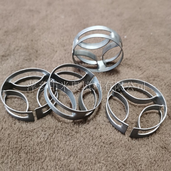 扁環(huán)填料,屬于短開孔環(huán)型填料,簡稱為QH-1型或SMR(Super Mini Ring ),此填料用于低界面張力體系的液液萃取過程,軸向混合小,處理能力大,其傳質效率可提高20%以上;用于中等界面張力體系的液液萃取過程時,其液體負荷可達50~60m3/(m2.h);此種填料也可適用于氣液傳質過程。