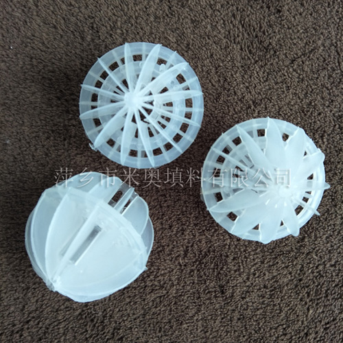 塑料多面空心球填料是水處理項(xiàng)目和廢氣處理常用到的一種填料,也是現(xiàn)在環(huán)保裝置項(xiàng)目常見(jiàn)的一種填料,大多采用聚丙烯(PP)塑料制成。多面空心球填料,在球中部沿整個(gè)周長(zhǎng)有一道加固環(huán),環(huán)的上下各有十二片球瓣,上下球瓣互相交錯(cuò),沿中心軸呈放射形布置。多面空心球填料具有表面積大,傳質(zhì)效率高,產(chǎn)品的球瓣與球瓣之間空間大,且重量輕、強(qiáng)度大、安裝方便、葉片多,阻力小,耐高溫,耐腐蝕,性能穩(wěn)定,適用于中間水箱,二氧化碳脫氧塔,接觸反應(yīng)塔等裝置。在全國(guó)電力、化學(xué)、化纖、電子、造紙、化肥生產(chǎn)、河水淡化,環(huán)保、三廢處理等行業(yè)的水處理、脫碳、脫氣、凈化、脫碳酸及油水分離等處理裝置中廣泛使用。